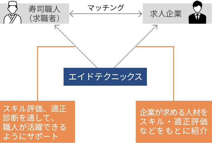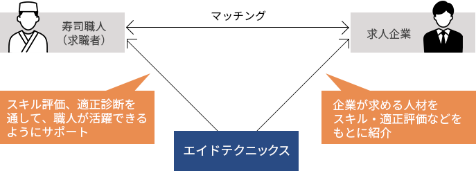 エイドテクニックスは寿司職人のキャリア支援を通して、 寿司職人と求人企業の双方が納得できるマッチングを行います。
